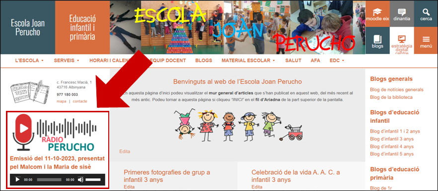 Cada matí, a l’entrada de l’escola, s’emet per la megafonia de l’escola i s’escolta a les aules un breu noticiari amb diverses informacions importants per a la comunitat: els aniversaris, el menú del menjador escolar, les activitats que hi fem…