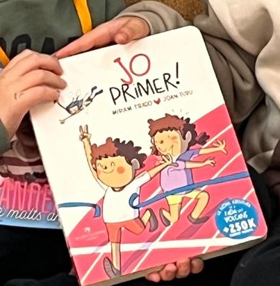 A més, han tingut un detall molt bonic amb la classe: ens han regalat un àlbum il·lustrat que ja forma part de la biblioteca d’aula i que segur que llegirem i rellegirem molts cops: Jo primer! de la Míriam Tirado i en Joan Turu.
