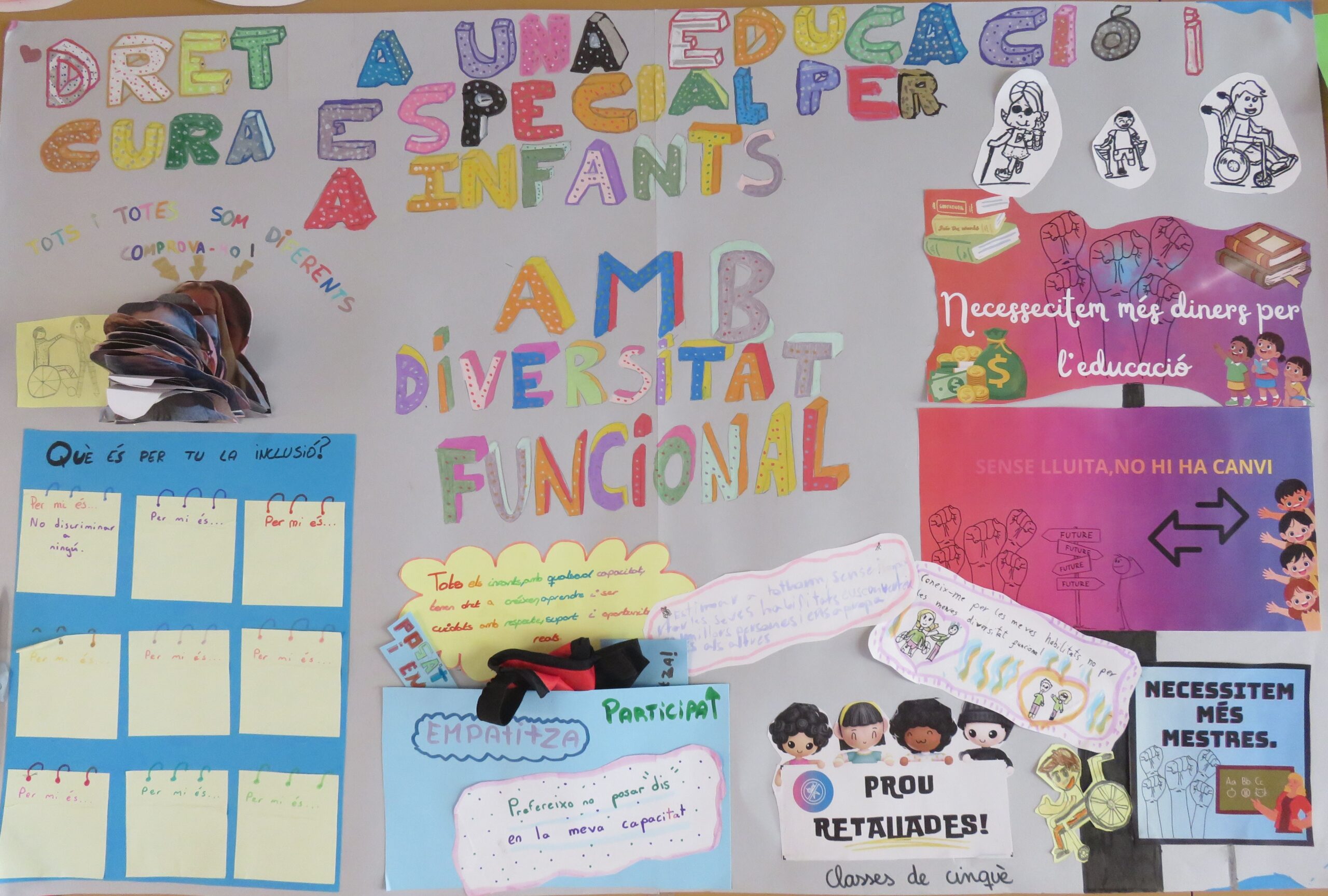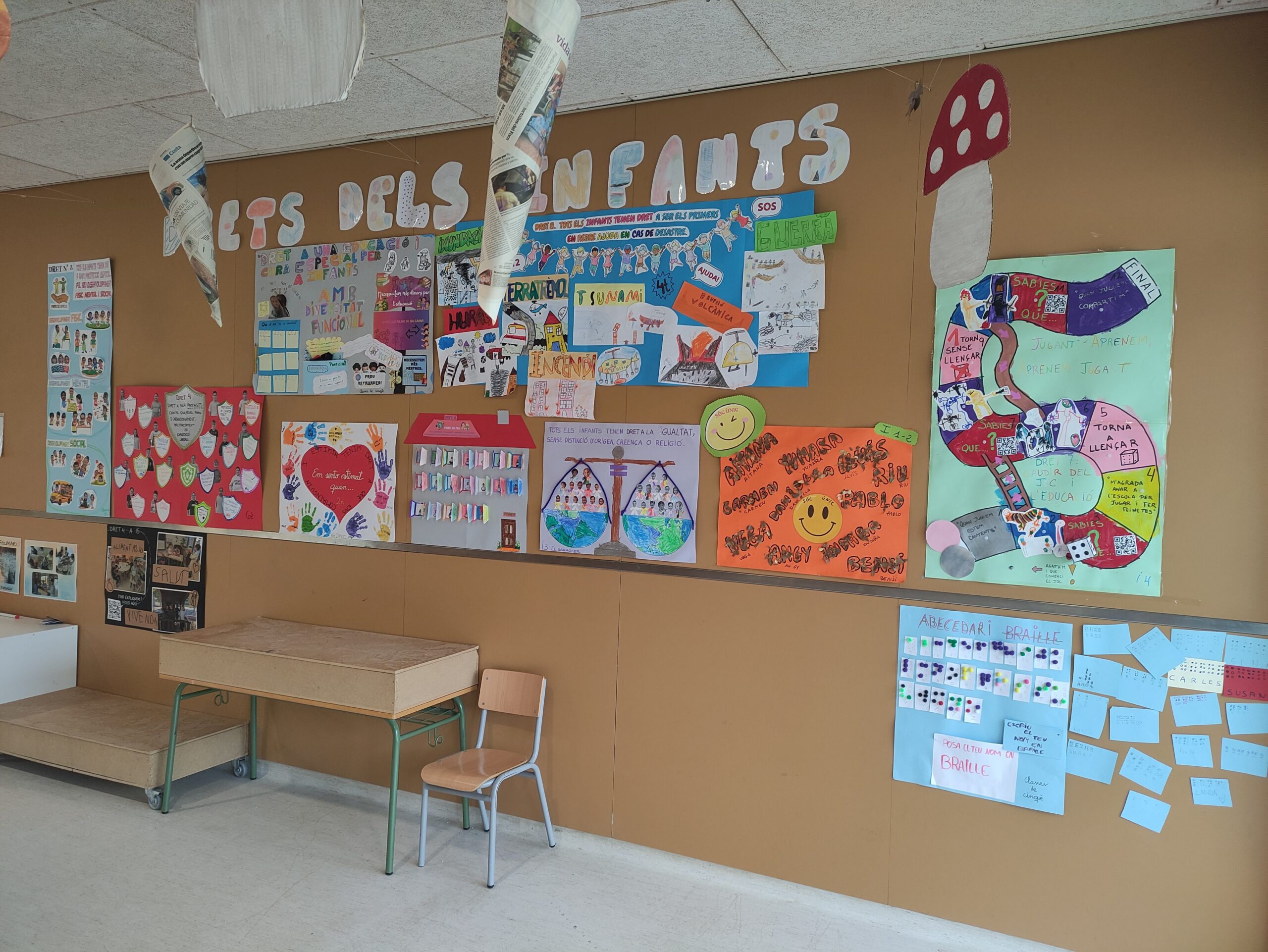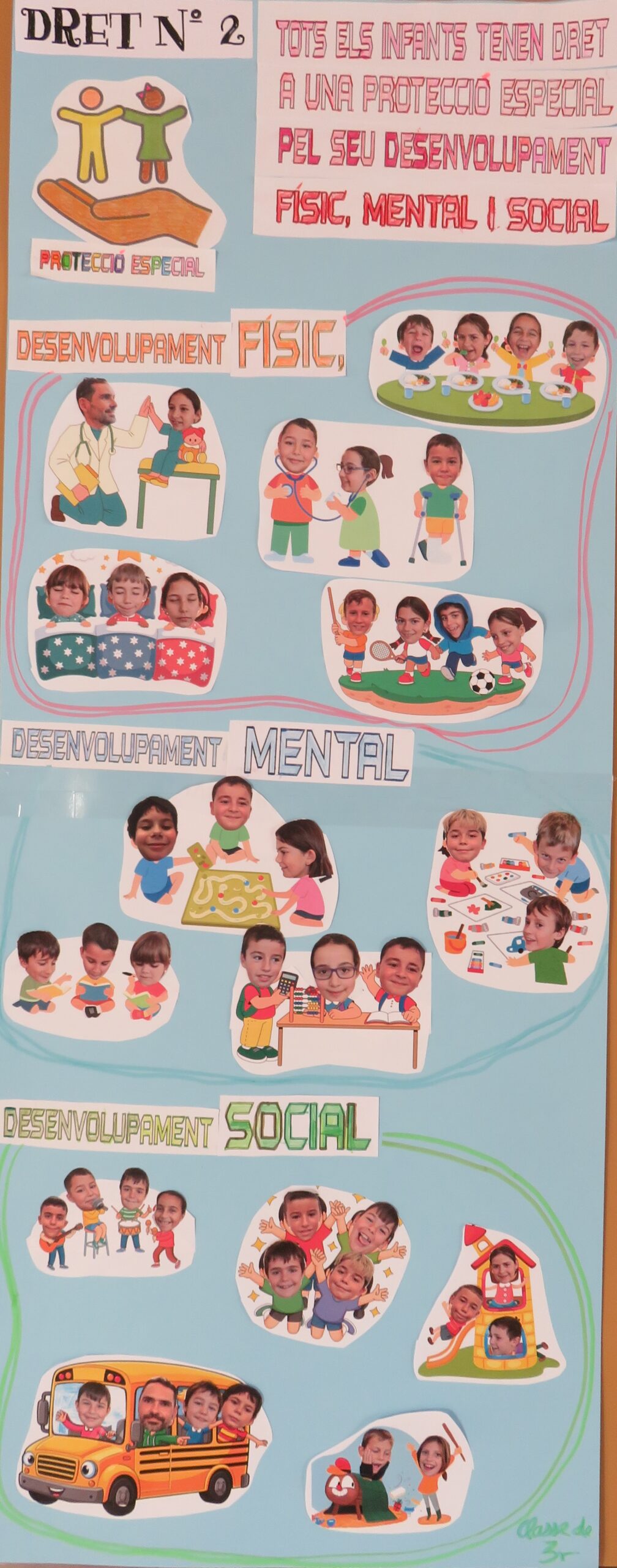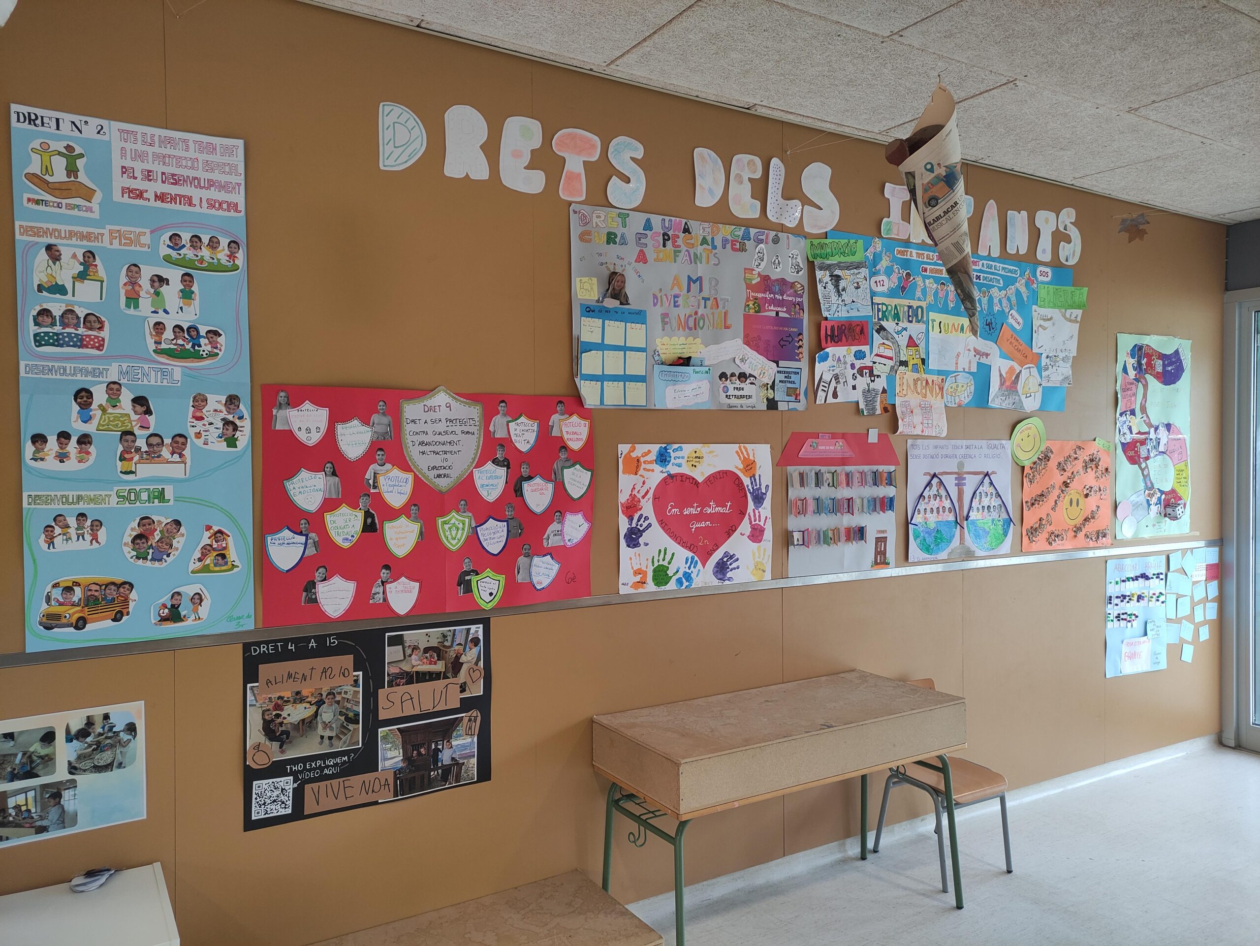 A l’escola creiem que és molt important que tots prenguem consciència d’aquesta realitat i ens hem organitzat per a què cada grup treballi un o diversos drets d’aquest tractat durant la jornada lectiva del 20 de novembre. Al final del dia, cada grup ha elaborat un petit mural que resumeix el treball fet:
