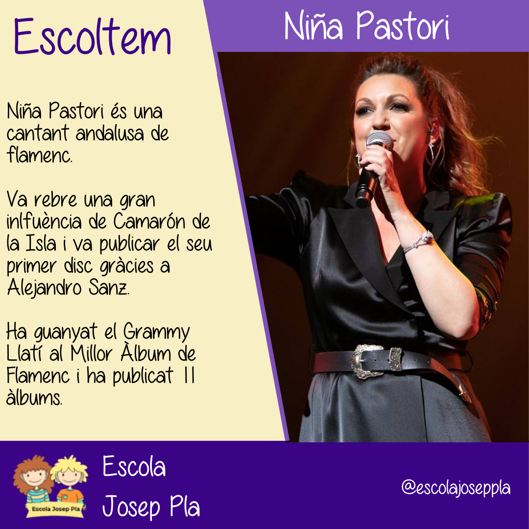 Benvolgudes famílies, Aquesta setmana escoltarem tant a les entrades com a les sortides a Niña Pastori. És una cantant andalusa de flamenc. Esperem que us agradi!