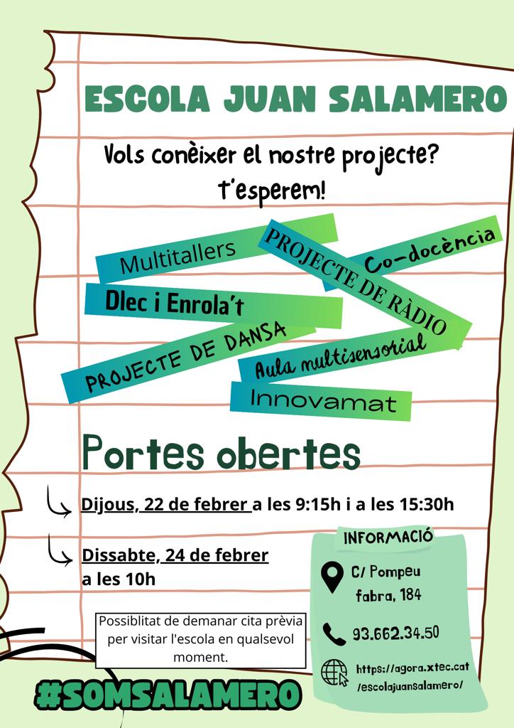 Us informem que durant el proper mes de febrer podreu venir a visitar la nostra escola. Els dies per a