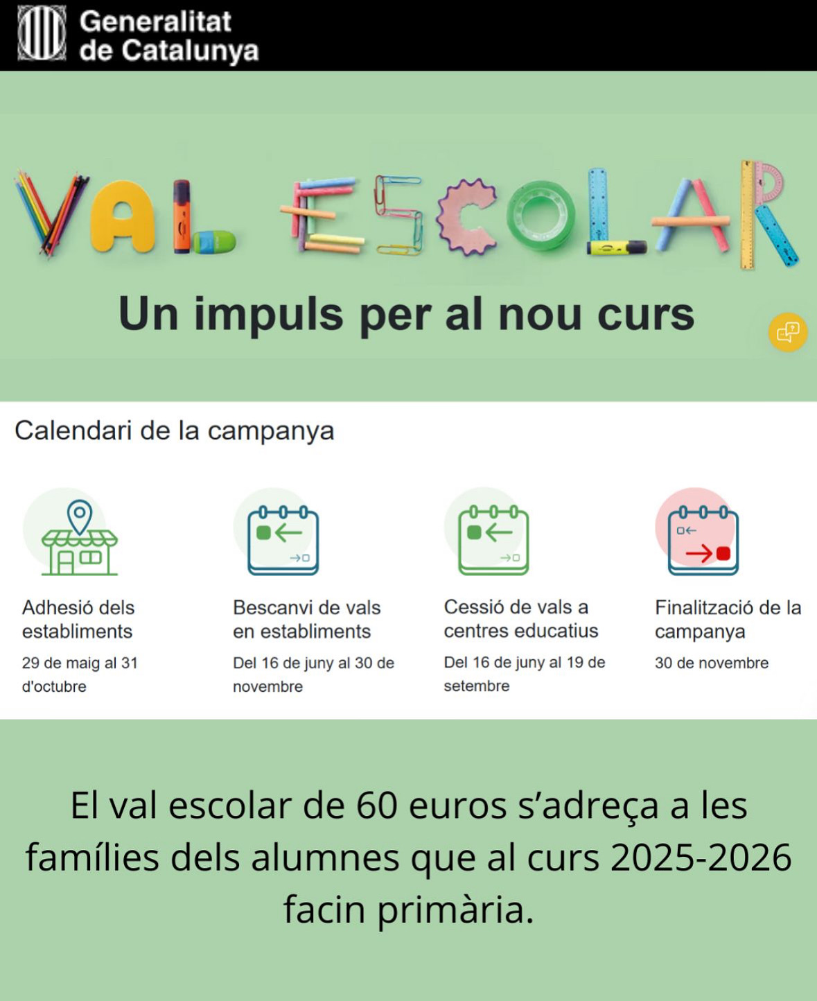 Podeu consultar tota la informació al web: https://valescolar.cat/