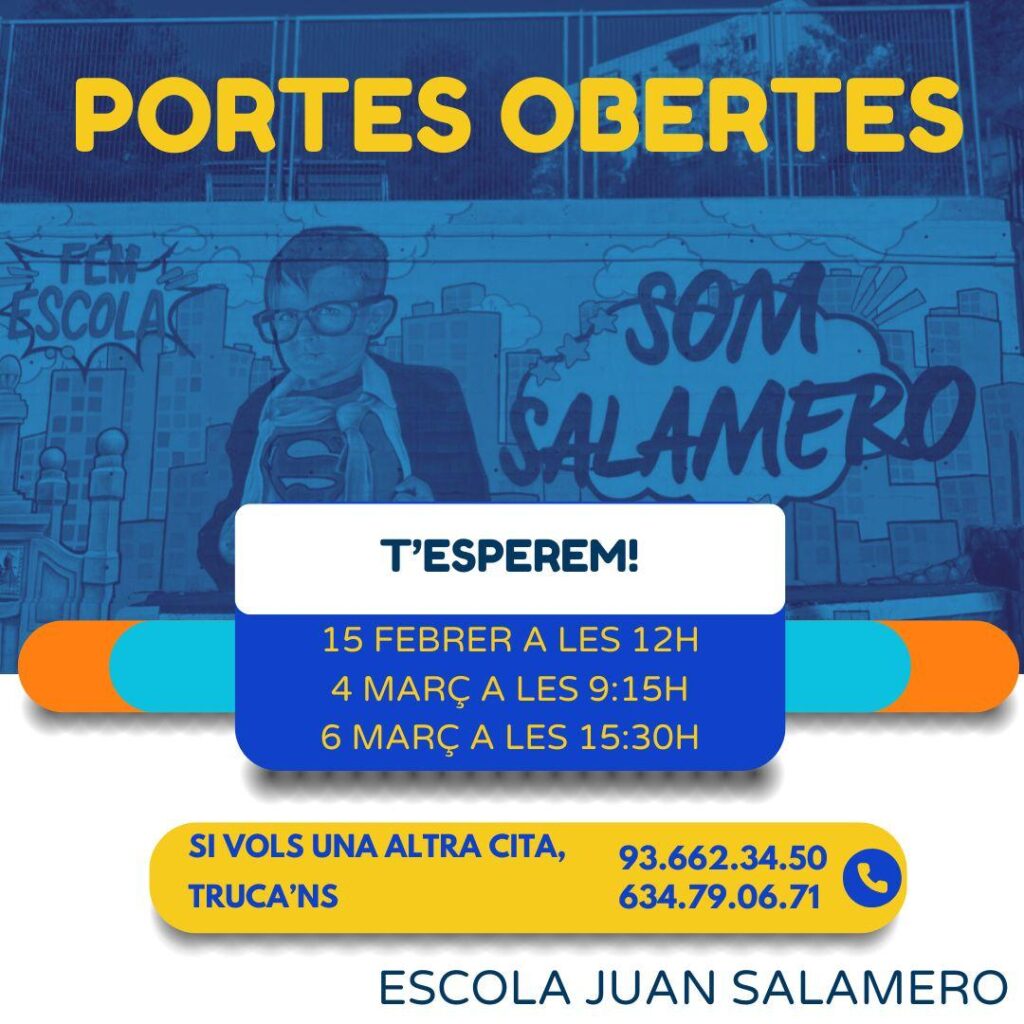 L’Escola Juan Salamero obre les portes a les famílies interessades a conèixer el nostre projecte educatiu. Les jornades de portes obertes tindran lloc el 17 de febrer (9.30 h i 15.15 h) i el 23 de febrer (17.15 h). Us hi esperem!