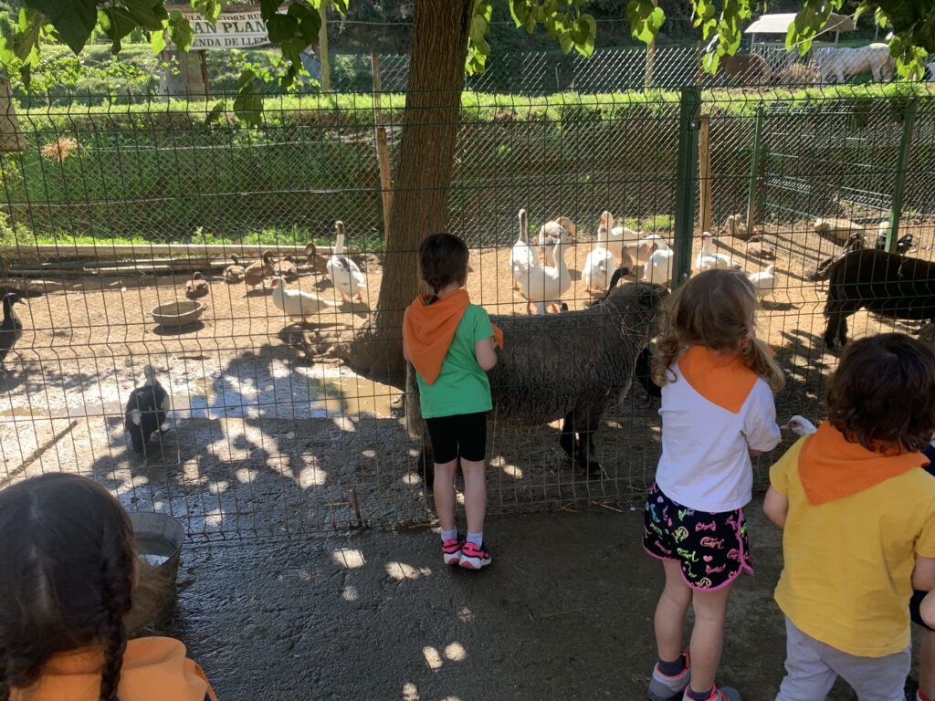 DESPRÉS D’ESMORZAR HEM POGUT RASPALLAR EL RUC I EL SEU FILL RUQUET, QUE NO TENIA NOM, ELS VAM PROPOSAR QUE ES DIGUÉS BAMBI I ELS HA SEMBLAT MOLT BÉ! DESPRÉS HEM DONAT UNA VOLTA AMB UN CARRO TIRAT PER EN PIPO, UN PONI MOLT BONIC! HEM DONAT DE MENJAR A LES GALLINES, LES OQUES, ELS ÀNECS I TOTS ELS ANIMALS DEL CORRAL. TAMBÉ HEM VIST CAVALLS, DUES VAQUES, OVELLES, CABRES I UN PORQUET! A LA TARDA HEM JUGAT ALS PRATS DEL VOLTANT DE LA GRANJA. UNA EXCURSIÓ FANTÀSTICA!
