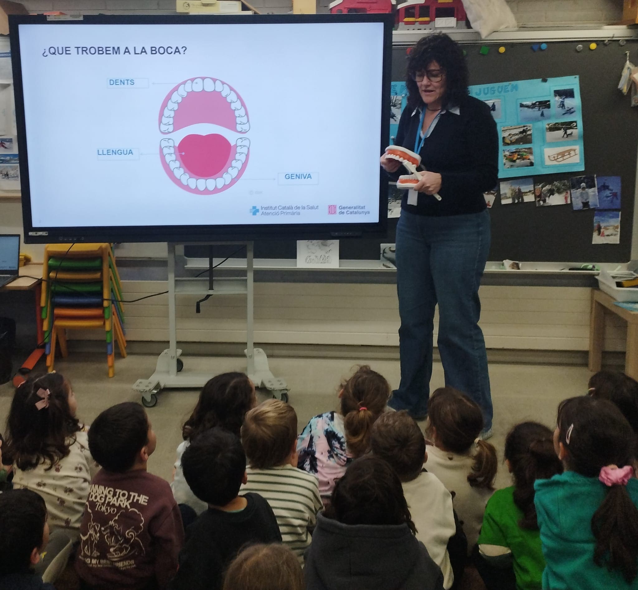 Després de la revisió bucodental, els Bambis d’I4 hem rebut la visita d’una higienista bucal a l’escola. Durant la sessió ens ha explicat, d’una manera molt entenedora i divertida, com hem de tenir cura de les nostres dents perquè es mantinguin sanes i fortes.