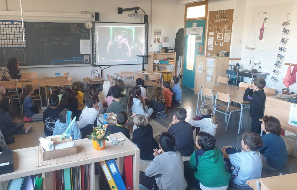 En la darrera sessió, vam organitzar una quedada virtual a través de “twitch” amb el mestre Pablo què ens acompanya en algunes sessions a l’aula, ja que també és streamer. Així doncs, en Pablo va començar la connexió explicant una mica com era l’escola La Canaleta a través de “mentides”: en aquesta escola només treballen amb llibres, els mestres no es preocupen pels infants, no es fa cap excursió, etc. L’alumnat va començar a indignar-se (i amb motiu), ja que tot el que deia no era veritat. Posteriorment li vam comentar que tot el que deia eren mentides i com podia dir això una persona què coneixíem.
