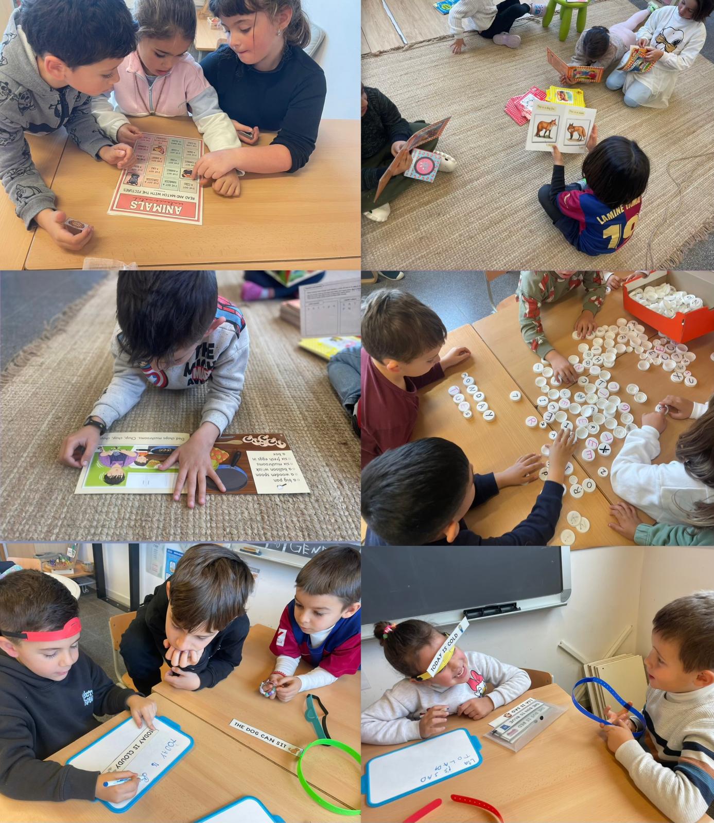 Hem començat el mes de gener iniciant-nos en la lectura, amb la Learning Station de Jolly Phonics, hem pogut gaudir d’estonetes de lectura de llibres for First Readers. En una altra Estació sobre animals, hem relacionat imatges d’animals amb les frases corresponents i, ho hem realitzat en parelles per poder practicar Speaking. En una altra Estació, hem utilitzat material reciclat (taps d’ampolla amb lletres) per poder confegir paraules que estem treballant prèviament de manera oral, en aquest cas, els dies de la setmana. I, a l’última Estació, hem jugat a ser Mini Teachers and Students realitzant un English Dictation de frases. Per fer-ho més divertit, la frase que havíem de dictar a la nostra parella, la portàvem al cap amb una banda.