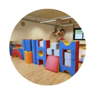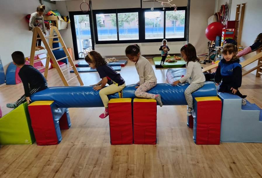 A l’espai mou-te explorem el nostre cos amb material molt divers ( blocs tous, escales, barres d’equilibri, pilotes, cèrcols,…) partint de  la filosofia d’ Aucouturier.