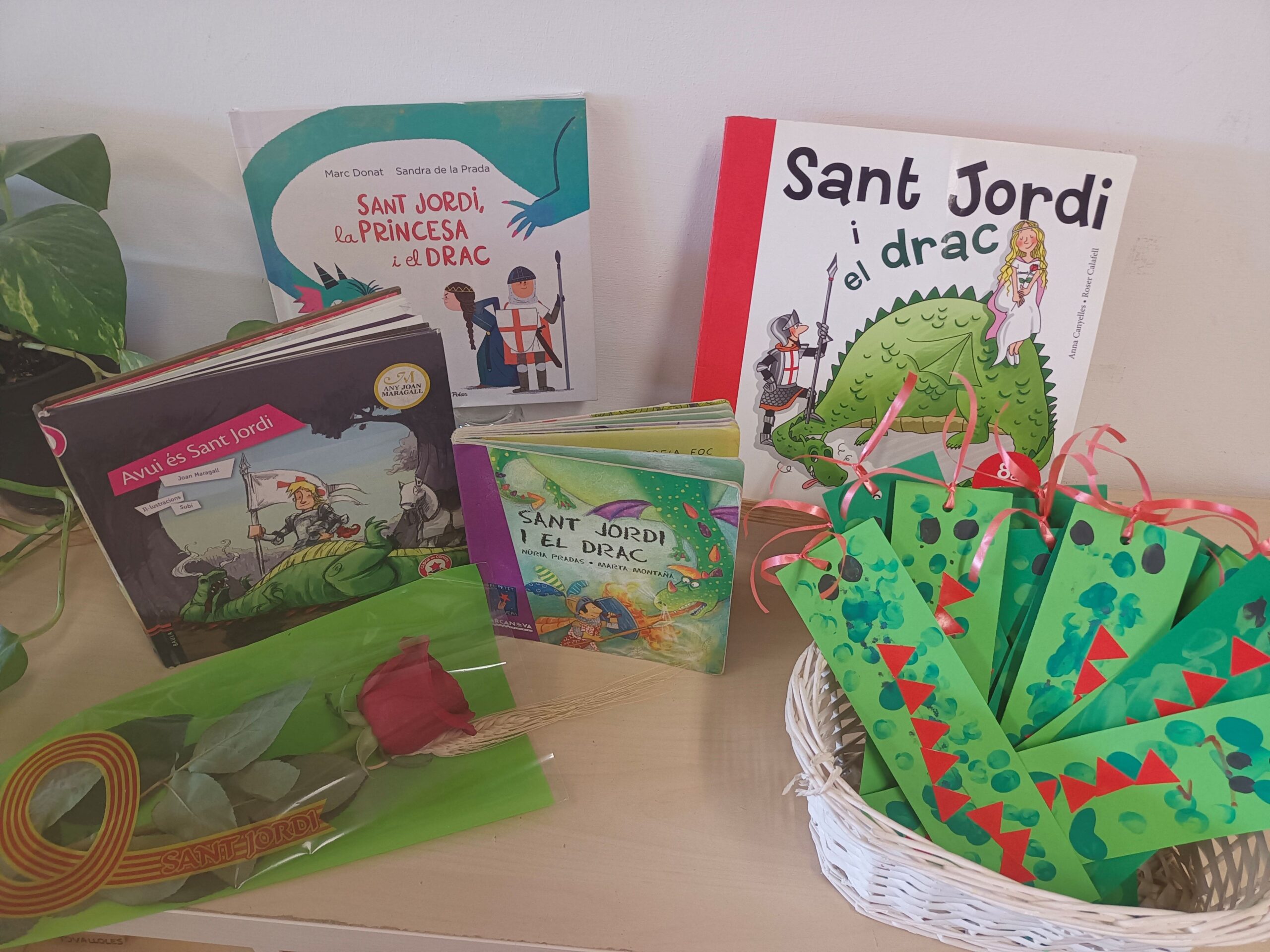 Aquests dies  els alumnes de la comunitat de petits  celebrem la festa de Sant Jordi. Escoltem contes, cantem cançons, fem punts de lectura, anem a veure la representació de la  Llegenda de Sant Jordi , visitem la paradeta de la nostra escola,…