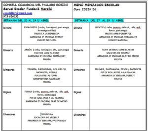 en aquesta pàgina podreu trobar els menús quinzenals del menjador escolar.