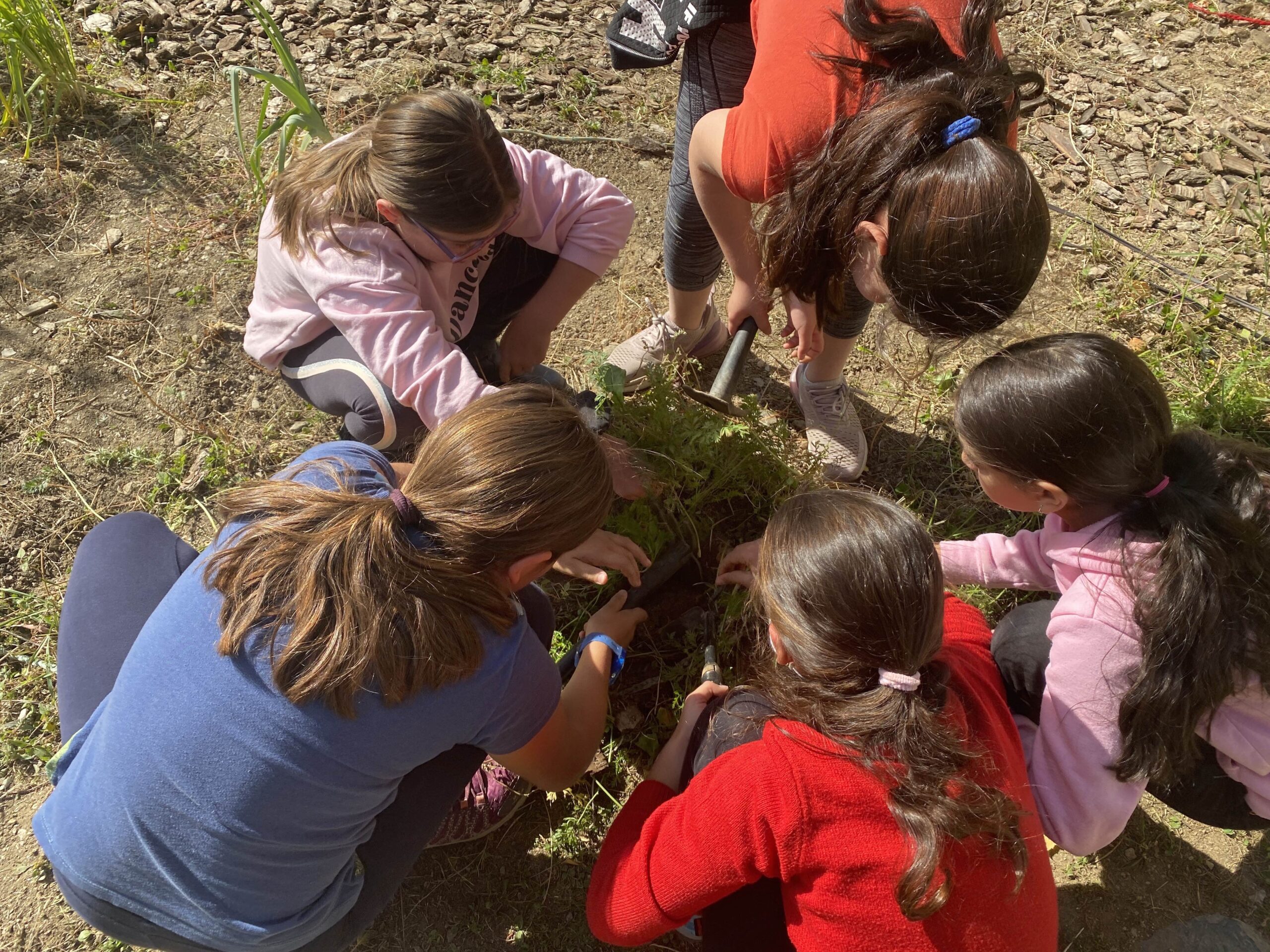 Tot l’alumnat de l’escola, primer hem netejat l’ hort d’ herbes que havíen sortit allà on no tocava i per això les anomenem “males herbes”.