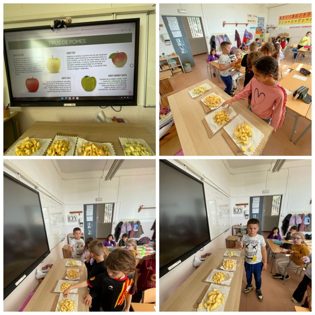 Els nens i nenes de segon hem anat al mercat de LLagostera a comprar pomes i després hem fet un tast i hem hagut d’endevinar quina era casa una!