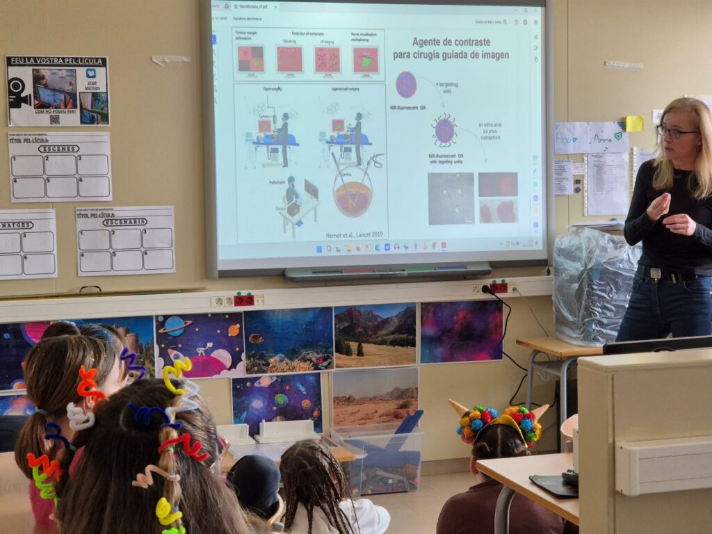 En aquest sentit, a la nostra escola hem tingut el plaer de comptar amb una d’aquestes dones directamentament implicada en el món de la ciència i la recerca. Aquest dimarts la MARIANA KÖBER ens ha visitat amb l’objectiu d’apropar la ciència als nostres infants. La Mariana forma part del grup d’investigadors i investigadores que treballen a l’Institut de Ciència de Materials de Barcelona (ICMAB-CSIC) situat a l’UAB.