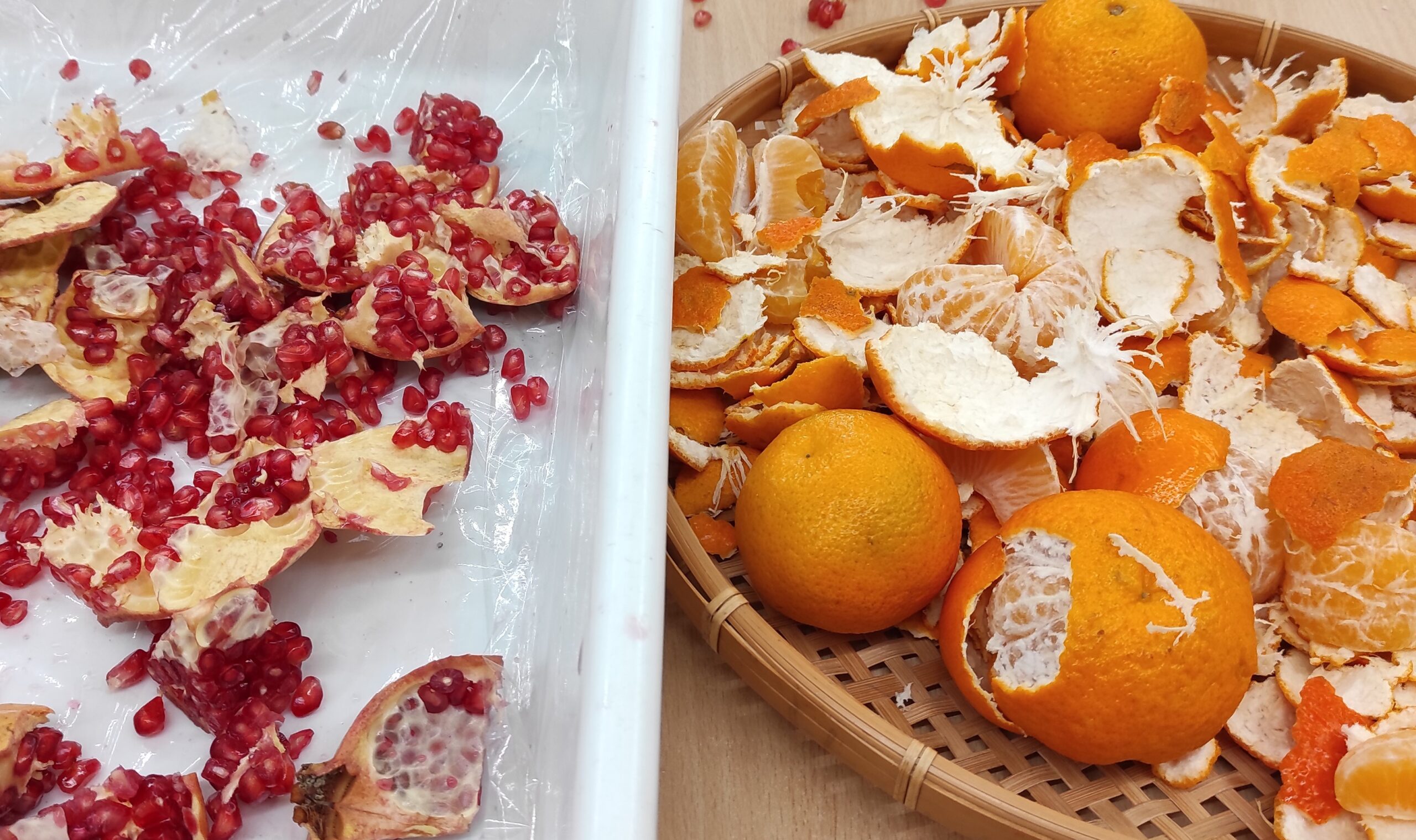 Durant uns dies hem experimentat amb unes fruites de la tardor, les magranes i les mandarines.