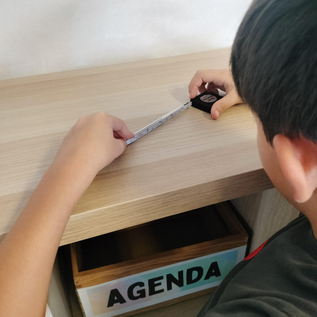 El primer que vam fer va ser mirar un vídeo on ens ensenyaven a plantar els calçots. Després, ens vam adonar que per ajudar-los havíem de treballar amb la mesura. Vam començar a mesurar objectes de la classe, amb la cinta mètrica i el regle. També vam veure la necessitat d’aprendre a mesurar perímetres.