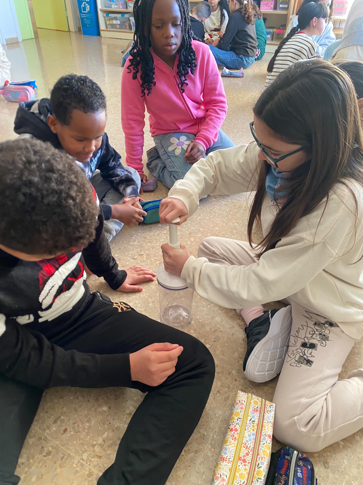 L’aire és matèria?? Redacció13/01/26 El grup de cinquè ha experimentat amb els conceptes de volum i massa per tancar el projecte de matèria i materials. Hem entès que és el buit i hem comprovat que aconseguim fer-ho, fent servir els sentits de l’oïda, la vista i el tacte.