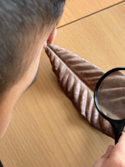 A continuació, anem a buscar-les, ja que les necessitem per a fer l’observació i verificar si els nostres dibuixos són correctes. Seguidament, fem una observació a ull nu i apuntem a la pissarra que hem percebut i per mirar-les de ben a prop, agafem lupes.