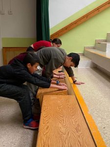 Vam investigar i hem vist que hi ha un joc que es diu “Geocaching“, on es troben una espècie de tresors per qualsevol part del món. Nosaltres hem creat un joc de localització per dins l’edifici de l’escola, fent nosaltres les indicacions, per tal d’entendre què és el que fa un GPS automàticament quan ens indica. Hem posat a prova als companys de 5è, que han cercat els “catxés” o “Tresors” i els ha agradat molt. Ens ha servit per veure si hem comès errades i modificar-les, per poder-ho fer extensiu a la resta de l’escola. Per fer-ho, hem posat en pràctica els nostres coneixements matemàtics sobre mesura, orientació al mapa de l’escola… així com l’elaboració d’un text instructiu fent referència a les coordenades per qui volguès seguir el joc.