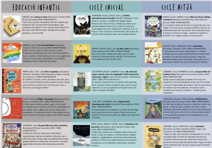 les festes nadalenques ja són aquí. Per això, un any més, volem compartir amb vosaltres la guia de lectures recomanades perquè en aquestes festes no us oblideu dels contes i els llibres. Aquesta guia ha estat elaborada per la Comunitat de Pràctica de Biblioteques Escolars del Servei Educatiu Baix Llobregat-6.