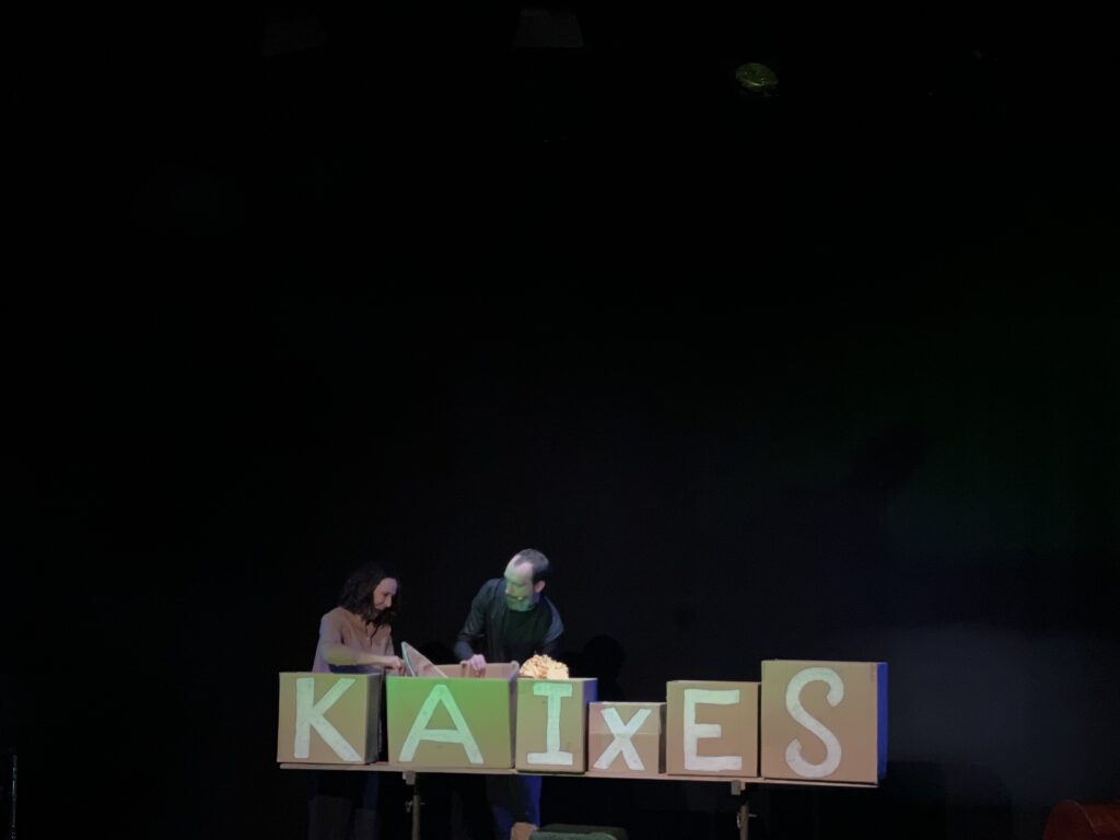 El passat dijous 23 de febrer els infants de 2n vam anar al teatre Tantarantana a l’espectable musical KAIXES, una barreja eclèctica entre la música popular i la música d’autor on cada cançó esdevenia un joc a través del teatre d’objectes. Els protagonistes d’aquest espectacle van ser els diferents instruments musicals; l’ukelele, la flauta travessera,