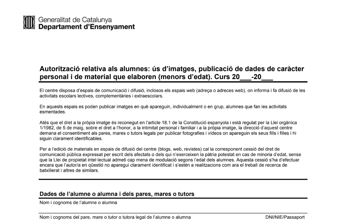Fent clic a la imatge podeu accedir a tots els documents i autoritzacions del centre d’enguany: