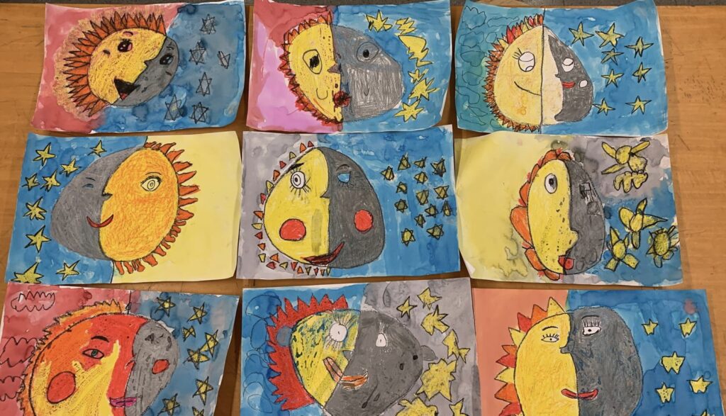 durant el mes d’octubre els infants de 2n han estat treballant el dia i la nit a través de l’art. Arrel d’aquests dos conceptes, s’han endinsat en el treball de la llum i la foscor i en l’aprenentatge dels colors càlids i freds aprofitant el canvi d’estació.