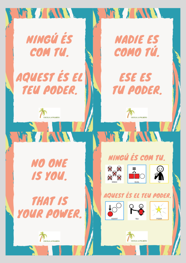 Aquest mes d’octubre estem treballant l’autoestima i l’autoconcepte a partir de la frase: NINGÚ ÉS COM TU. AQUEST ÉS EL TEU PODER.