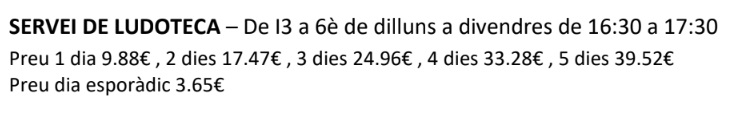 SERVEI DE LUDOTECA A LA TARDA