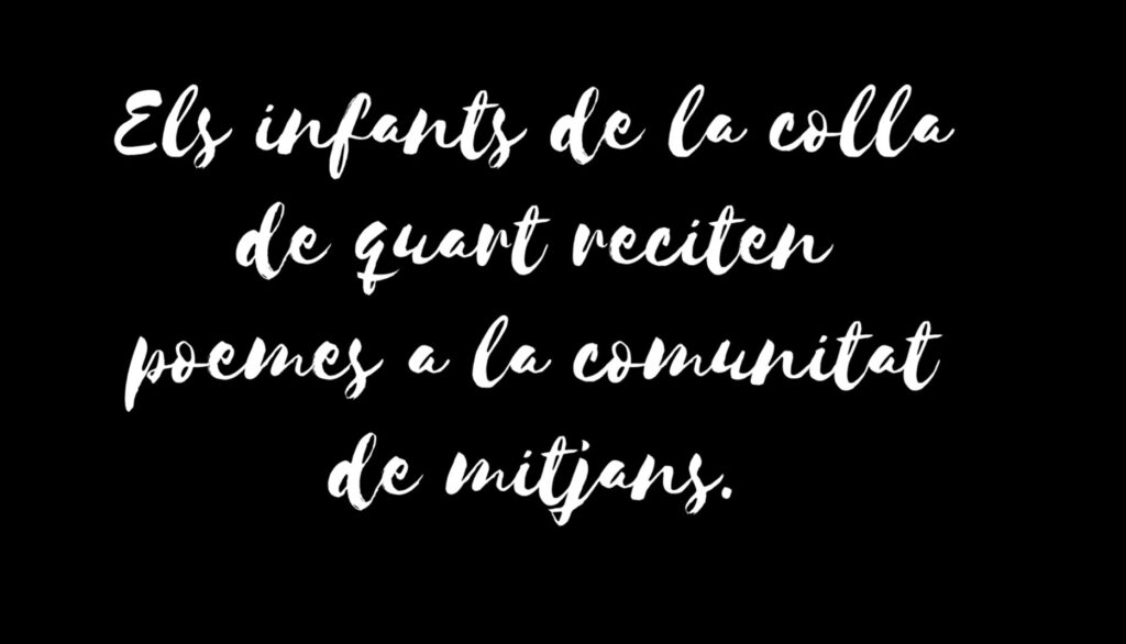Protegit: 4t Els infants de la colla de quart reciten poemes a la comunitat de mitjans