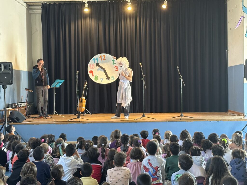 Els infants d’Infantil i Cicle Inicial van gaudir d’un espectacle dinàmic i participatiu, ballant i vivint la música de ben a prop, tot relacionant-ho amb l’eix temàtic d’aquest curs.