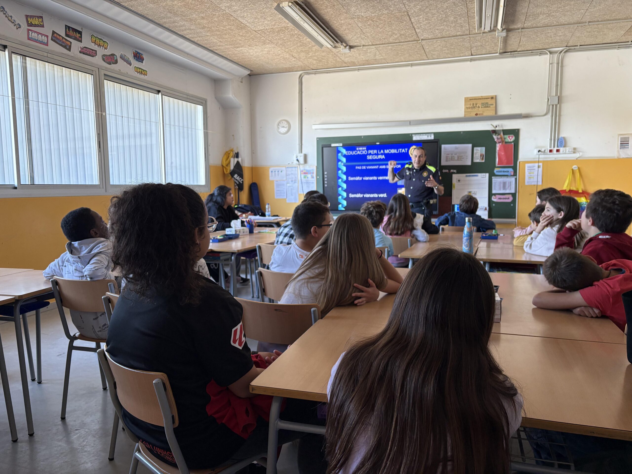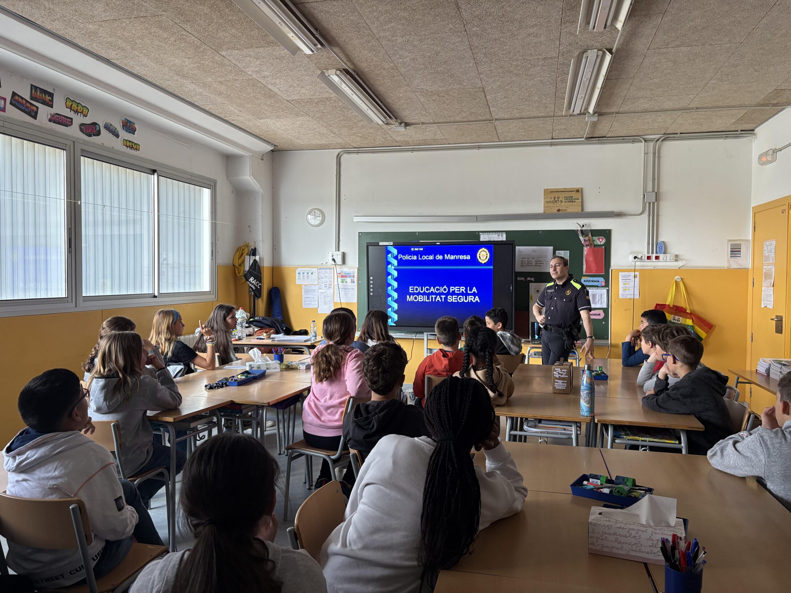 Aquesta setmana, l’alumnat de 5è A i 5è B hem tingut una visita molt especial a les aules: un agent de la Policia Local de Manresa ha vingut a fer-nos una xerrada sobre mobilitat segura. Durant la sessió, hem après com circular correctament i amb responsabilitat, tant quan anem a peu, com quan viatgem com a passatgers dins d’un vehicle o circulem en bicicleta.