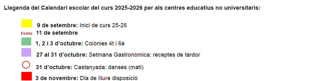 Compartim amb vosaltres el calendari escolar del curs 2025-2026, aprovat pel Consell Escolar el 26 de juny de 2025.