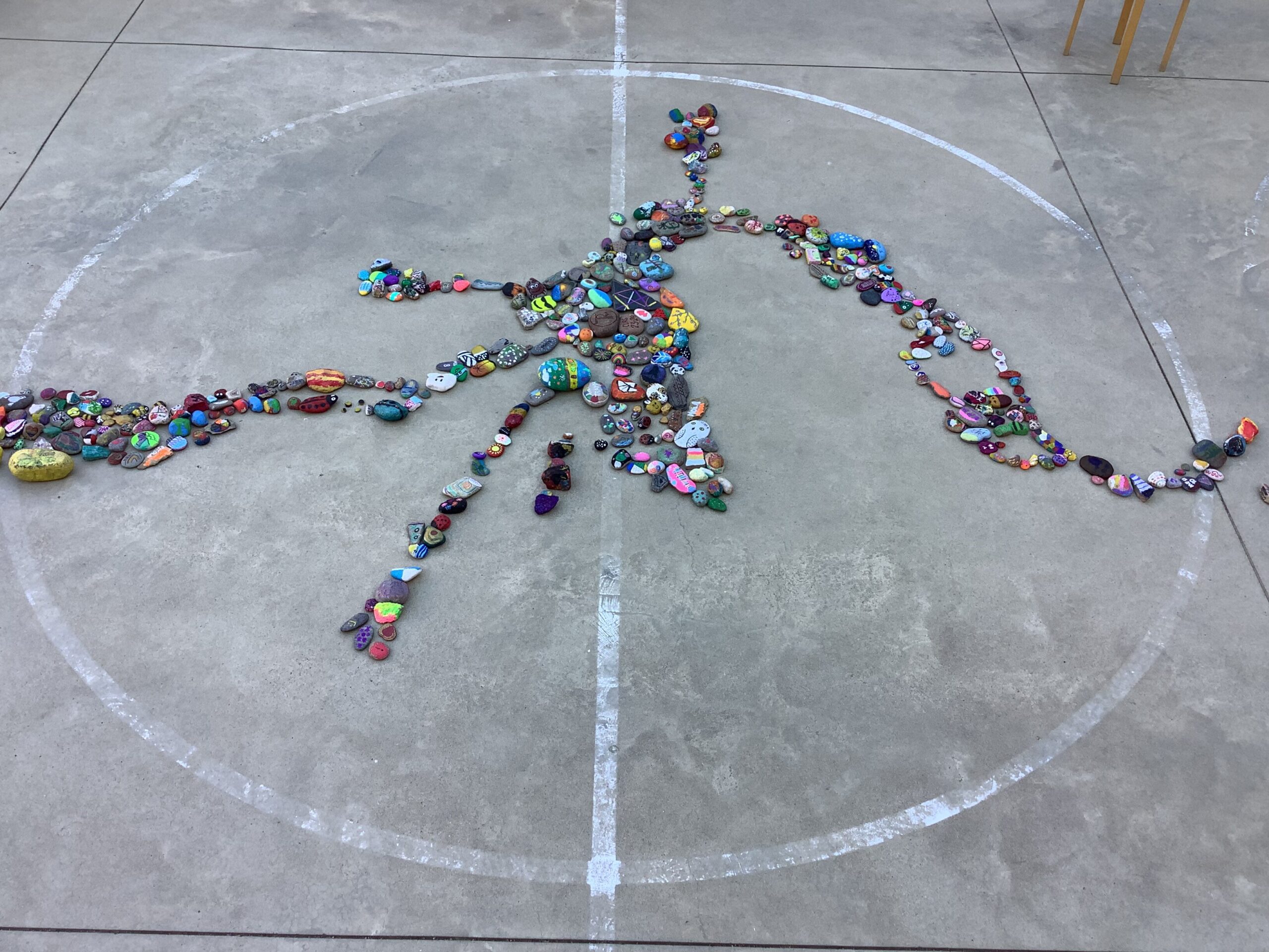 Cada infant ha portat una pedra pintada i junts hem fet una creació col·laborativa que ha decorat el pati.