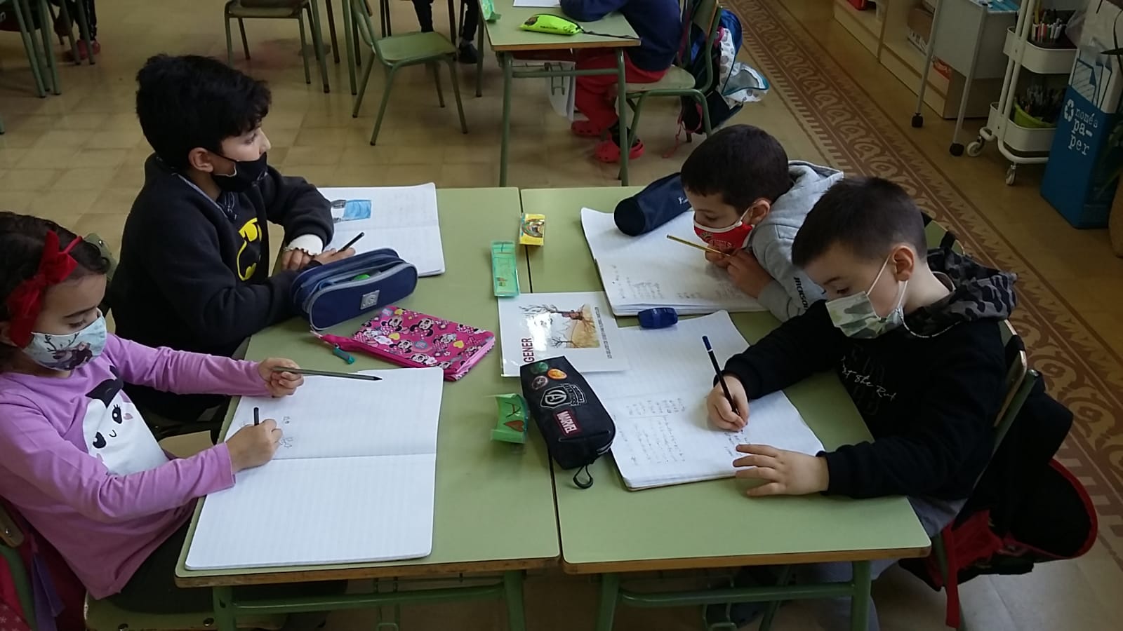 Les propostes de llengua volen la participació de tot l’alumnat de 1r. Són propostes prou obertes, per tal que cadascú pugui seguir el seu ritme d’aprenentatge i les pugui desenvolupar com necessiti.