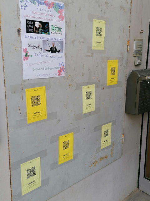 Entre dijous a la tarda i tota la jornada de divendres us trobareu uns papers grocs amb codis QR per escanejar-los i poder gaudir de la poesia que us llegeixen els alumnes.