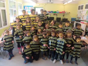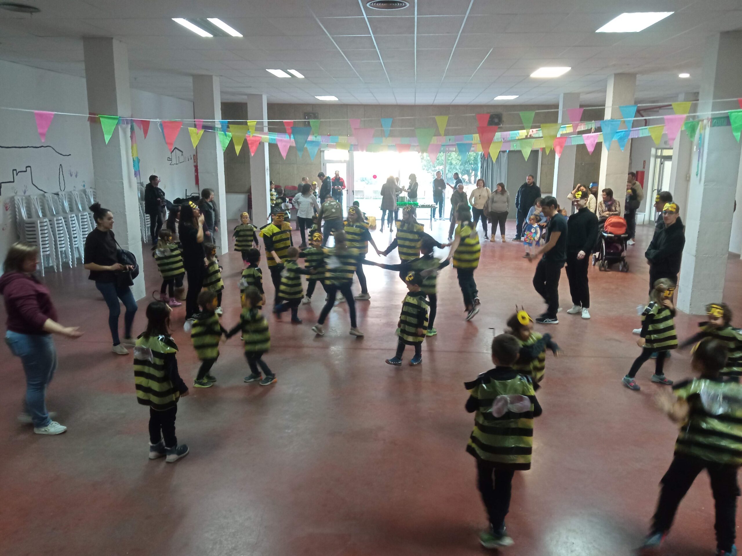 El passat divendres vam celebrar el carnaval i per celebrar-ho vam fer una rua, vam anar a la sala, vam ballar i després per a berenar vam menjar melindros amb xocolata. Durant la setmana vam preparar unes disfresses d’abelles. També vam seguir les ordres del rei carnestoltes.