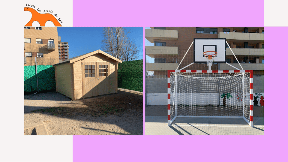 Aquest mes de febrer hem estrenat el mes amb material nou en el nostre pati! Per una banda, l’AFA ens ha aconseguit una caseta de fusta per fer Bibliopati que és xulíssima! A dins hi guardarem contes i jocs per fer servir a l’hora del pati. I en relació a la nostra pista, estrenem porteries