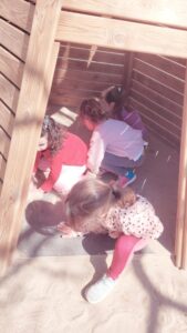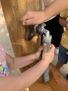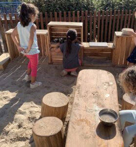 L’espai exterior és un altre espai on tots els aspectes del nostre PEC són presents. Els nostres patis ens apropen a la natura i esdevenen espais plenament educatius on es donen un tipus de jocs i relacions pròpies i diferents de la resta d’espais de l’escola. És el lloc on les dinàmiques de grup són plenament vives. Creiem que els espais d’esbarjo han de ser un reflex del projecte educatiu fent que siguin espais on es fomentin valors i proporcionin experiències generadores d’aprenentatge; espais facilitadors de relacions, descobriment, vivències i emocions.