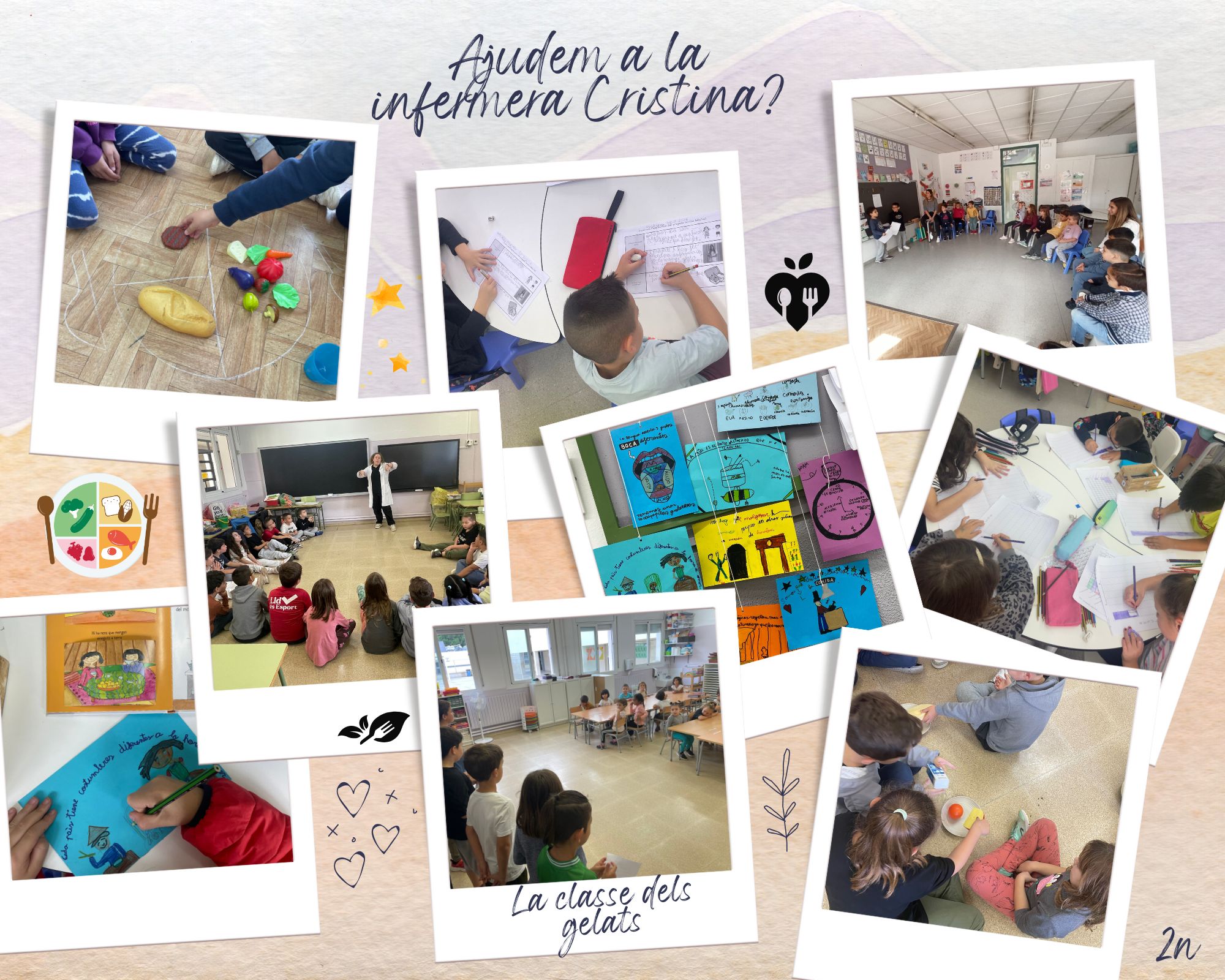 Els nens i nenes de la classe dels gelats hem estat treballant de valent en el projecte de l’alimentació. Una infermera anomenada Cristina ens va explicar que a la seva consulta arribaven forces infants amb mal de panxa i que no menjaven bé. Ens demanava ajuda per saber si a l’escola mengem saludablement a l’hora del pati, ja que ella no ho podia saber.