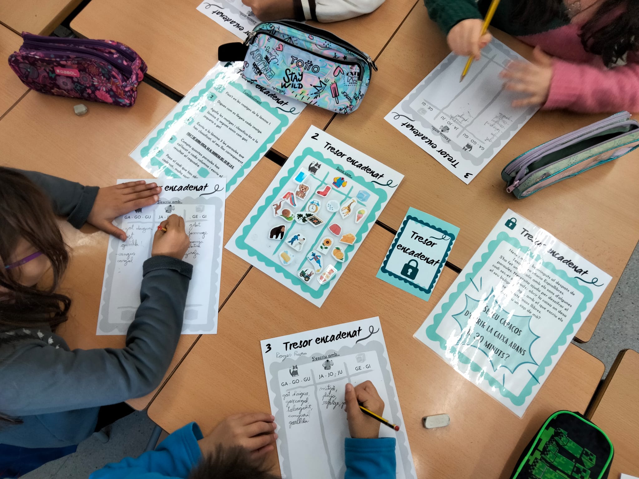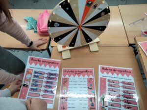 A tercer, dins de la nostra ABP de català “Què fem per dinar?” estem treballant el so i la grafia de la j i la g. Per treballar i interioritzar l’aprenentatge hem utilitzat el racó digital, l’oca ortogràfica (si no escrius bé la paraula perds el torn), el tresor encadenat (ordena bé les paraules per trobar la combinació per obrir la caixa i la ruleta ortogràfica per escriure en singular i en plural.