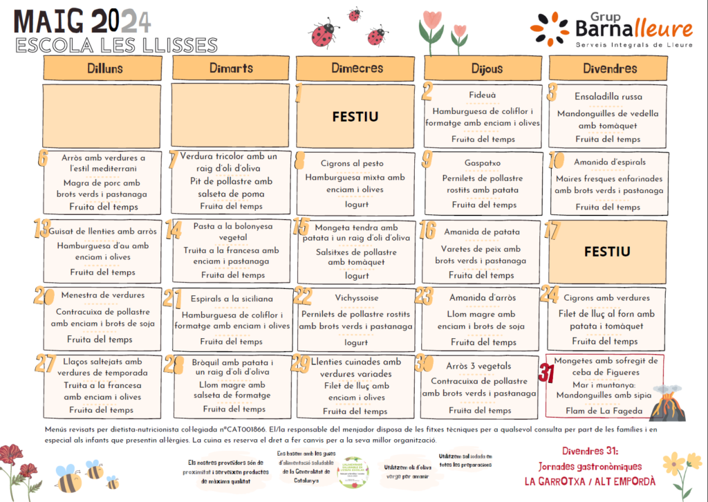 Menú maigPer admin / 30 d'abril de 2024 / Atenció a les Famílies Cicles General Portada Famílies, ja teniu penjats els menús del mes de maig!