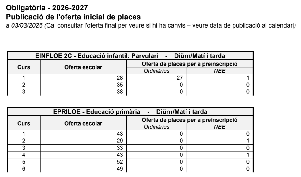 PREINSCRIPCIÓ I MATRÍCULA CURS 2026-27