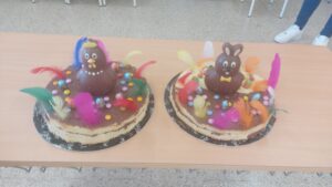 Per acabar el segon trimestre els infants de la classe dels robots hem fet la mona de Pasqua. Hem farcit amb xocolata dos pans de pessic i després els hem decorat amb plomes, ous de xocolata, lacasitos i figures grans de xocolata. Ens ha agradat molt fer de cuiners i cuineres. Estava boníssima. Des d’aquí volem donar les gràcies a les dues mares que ens han vingut a ajudar. Cliqueu a sobre la imatge i veureu com ho hem fet.