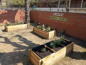 Hem muntat unes jardineres per poder plantar-hi plantes aromàtiques (julivert, espígol, romaní, farigola i menta). Primer de tot, vam preparar les jardineres: vam aprendre a tirar la terra a dins, omplint-les a poc a poc i observant com queia. Després vam parlar de què necessitàvem per poder plantar. Vam decidir anar a comprar les cinc plantes aromàtiques, així que vam comptar els diners per assegurar-nos que en teníem prou.