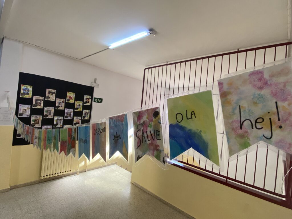 Els i les alumnes d’aula d’acollida celebrem el 21 de febrer, el dia internacional de la llengua materna, decorant el passadís amb banderoles on posa la paraula “hola” en diferents idiomes.
