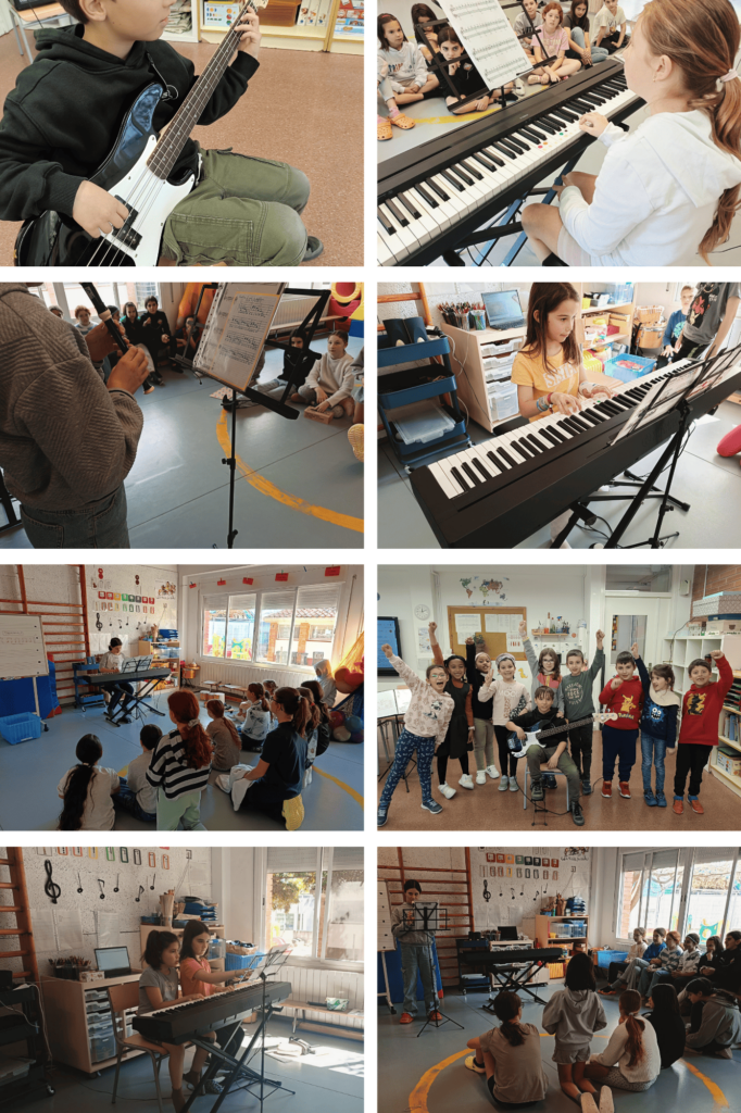 Hem pogut gaudir d’instruments de corda com ara la guitarra o el baix, el piano i de vent com la flauta, i hem pogut conèixer aspectes curiosos sobre aquests instruments i les propostes musicals que ens han interpretat (so, manera de tocar, parts de l’instrument, diferents estils musicals…).
