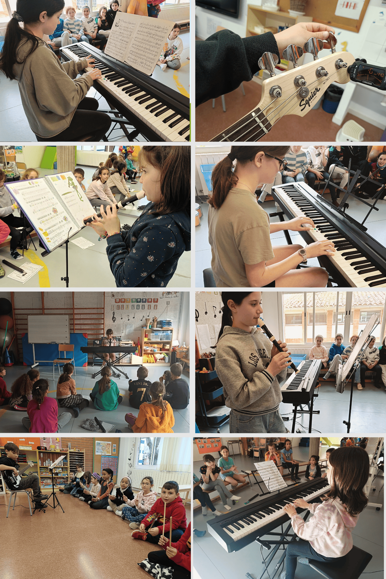 Hem pogut gaudir d’instruments de corda com ara la guitarra o el baix, el piano i de vent com la flauta, i hem pogut conèixer aspectes curiosos sobre aquests instruments i les propostes musicals que ens han interpretat (so, manera de tocar, parts de l’instrument, diferents estils musicals…).