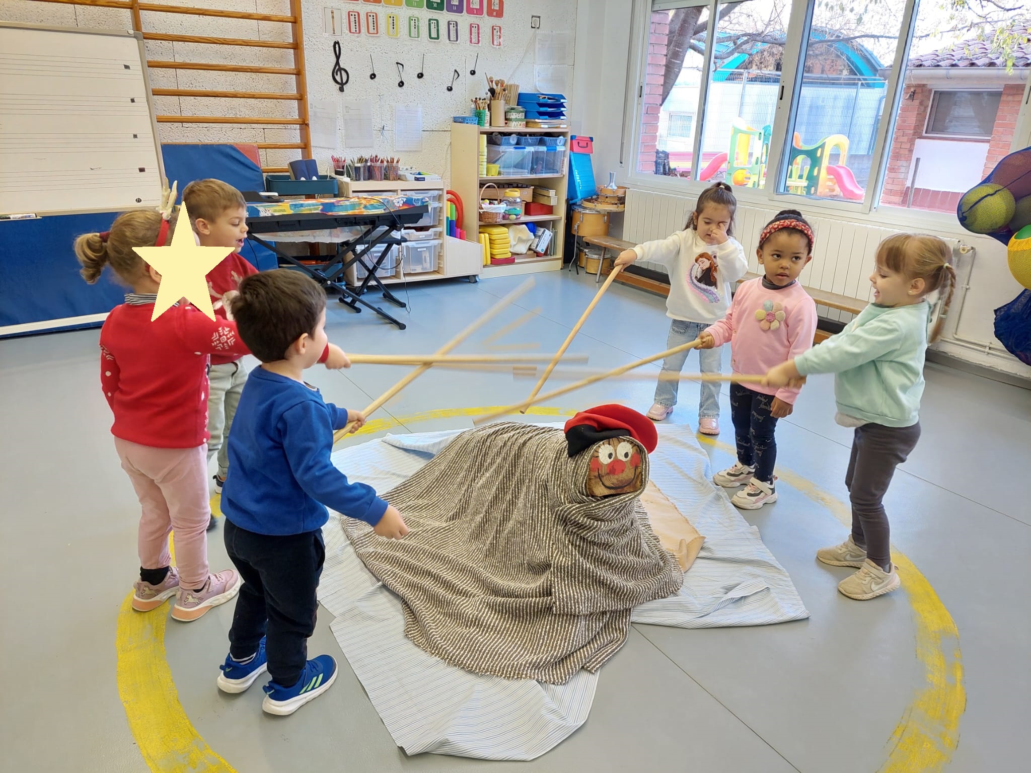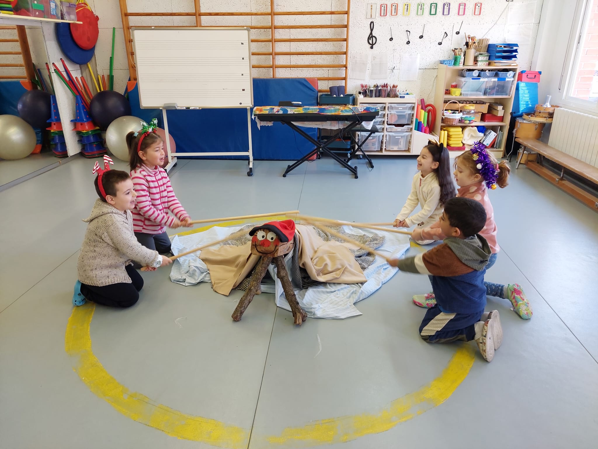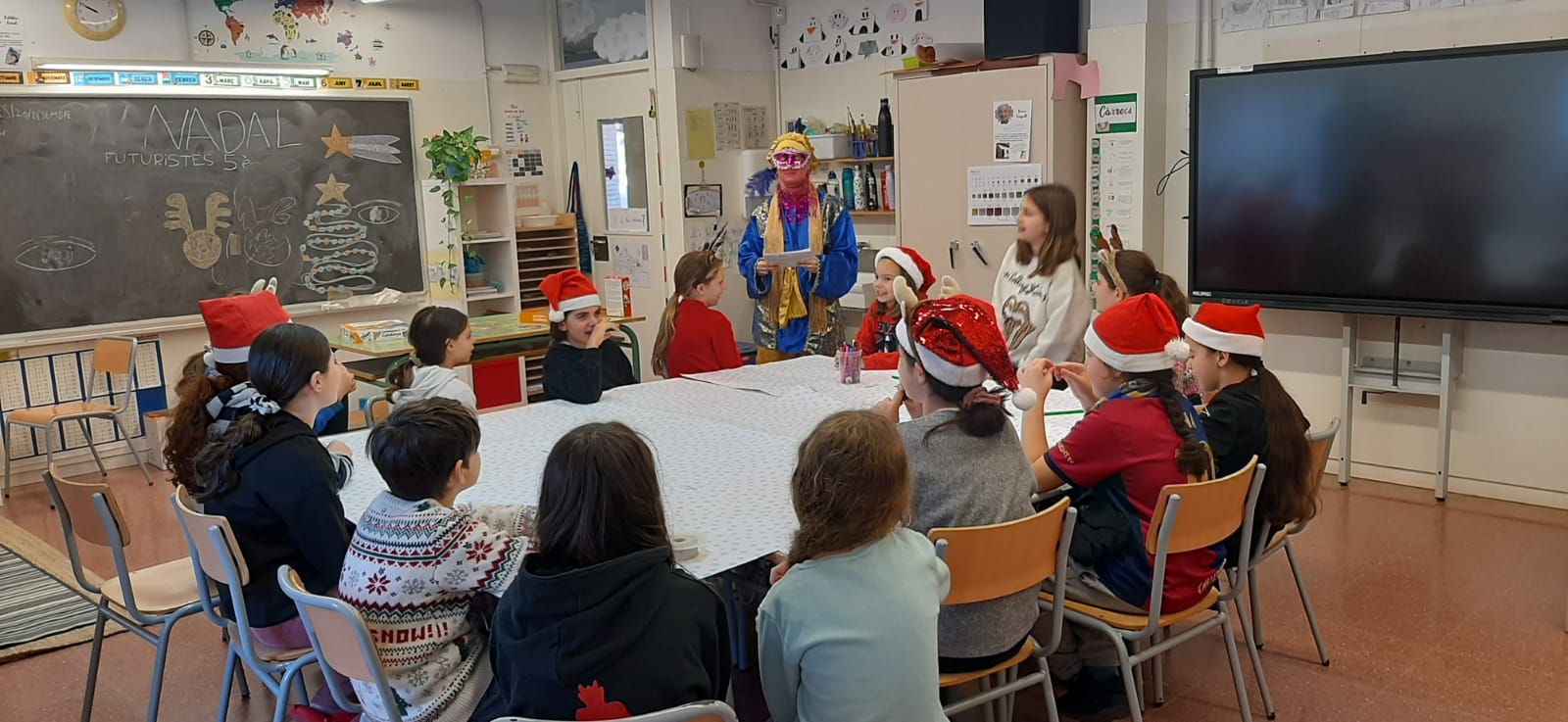 Ja ha arribat l’últim dia del trimestre i, abans d’acomiadar-nos, ho hem celebrat a l’escola. L’alumnat d’infantil ha fet cagar el Tió. Ja feia uns dies que el Tió havia arribat a l’escola i tots els nens i nenes l’havien donat menjar amb abundància. Ha cagat uns presents per cada infant i uns jocs que els podran fer servir tots junts a l’escola. Poc després ha vingut el patge reial a recollir les cartes dels alumnes de primària. Ha passat per totes les classes i la mainada ha aprofitat per llegir la carta que havien escrit i recita el poema de Nadal.