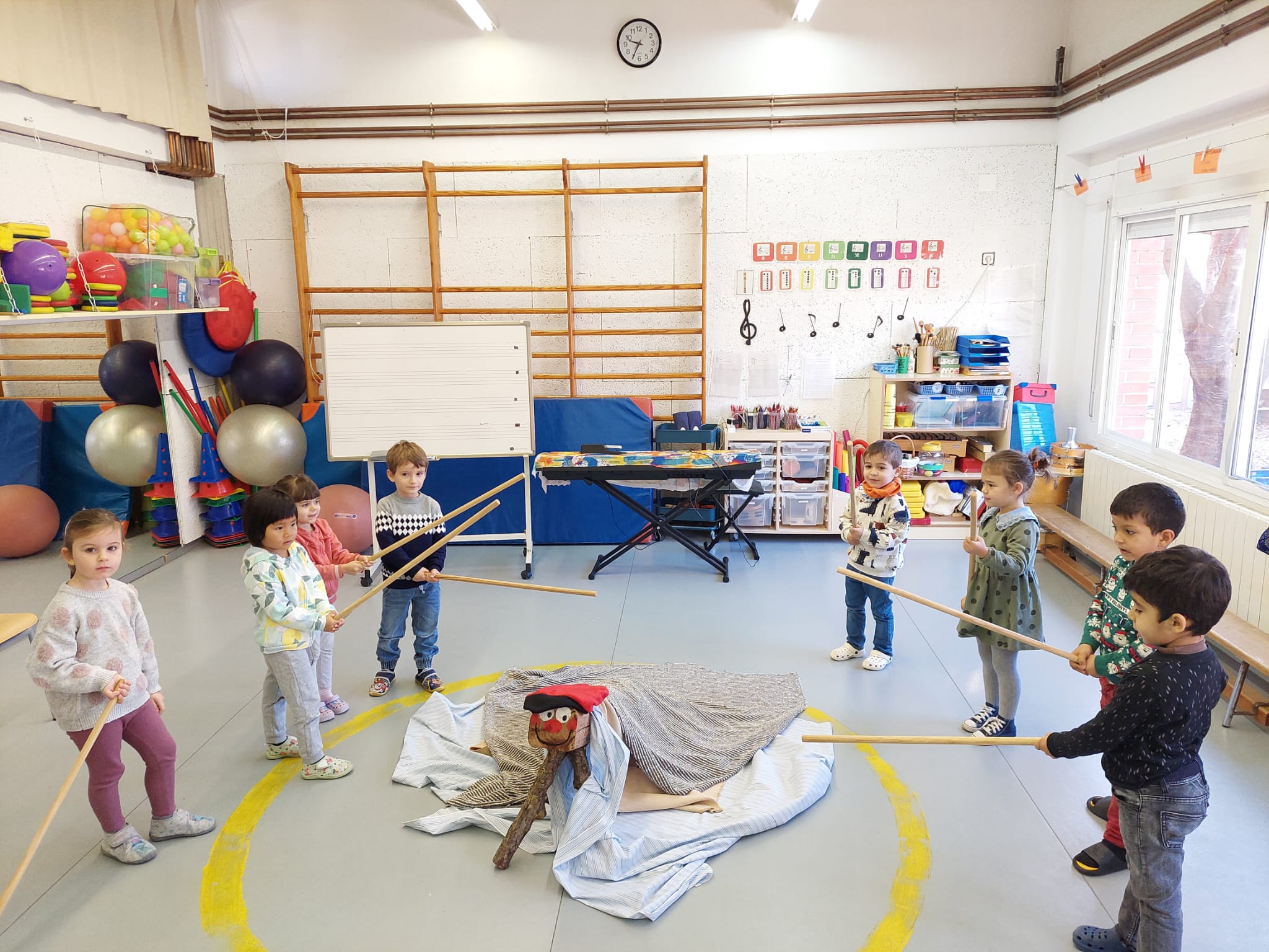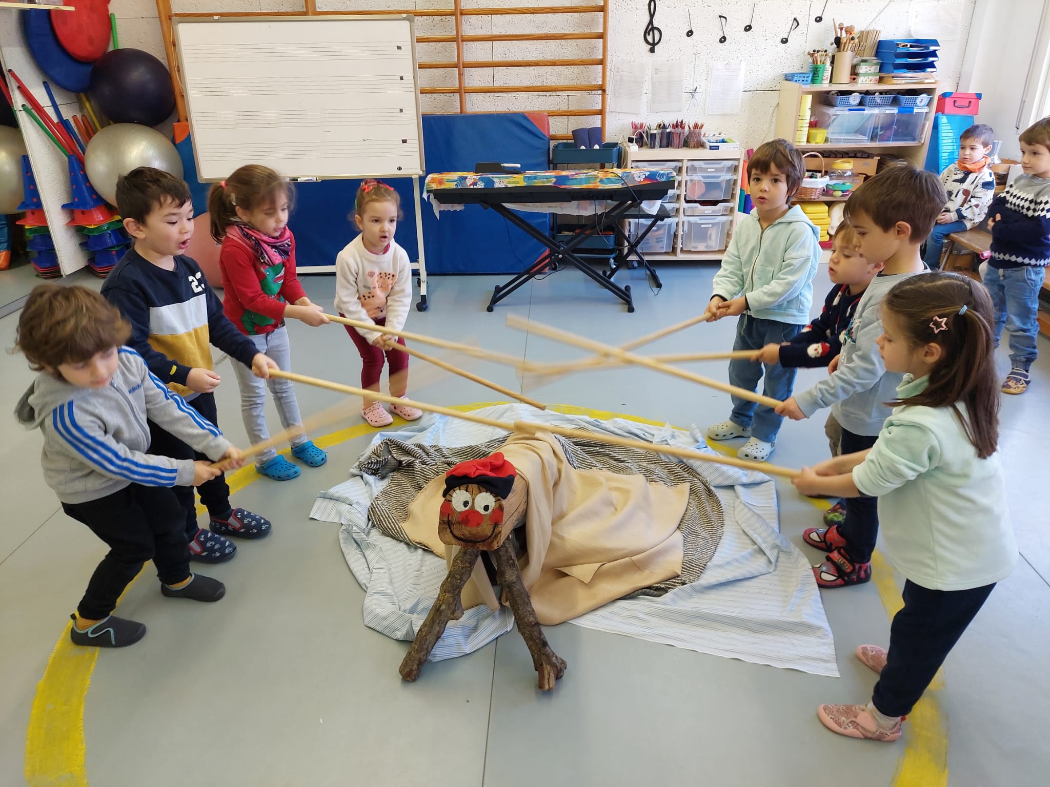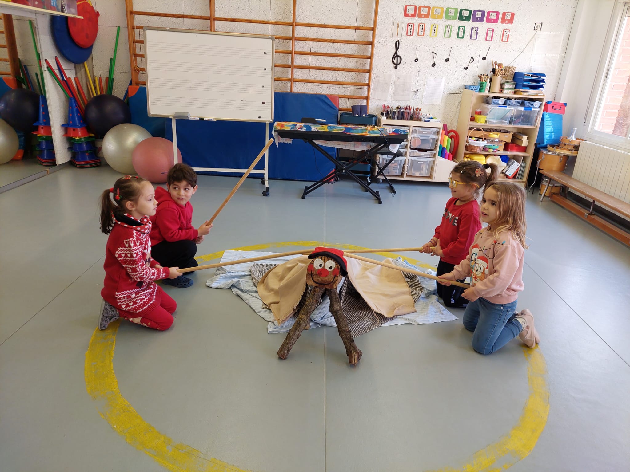 Ja ha arribat l’últim dia del trimestre i, abans d’acomiadar-nos, ho hem celebrat a l’escola. L’alumnat d’infantil ha fet cagar el Tió. Ja feia uns dies que el Tió havia arribat a l’escola i tots els nens i nenes l’havien donat menjar amb abundància. Ha cagat uns presents per cada infant i uns jocs que els podran fer servir tots junts a l’escola. Poc després ha vingut el patge reial a recollir les cartes dels alumnes de primària. Ha passat per totes les classes i la mainada ha aprofitat per llegir la carta que havien escrit i recita el poema de Nadal.