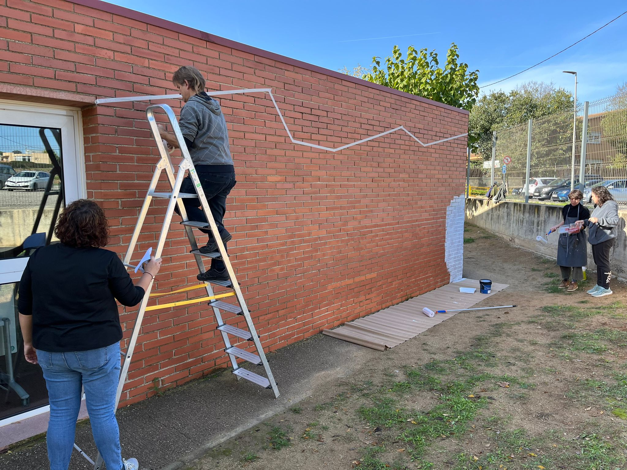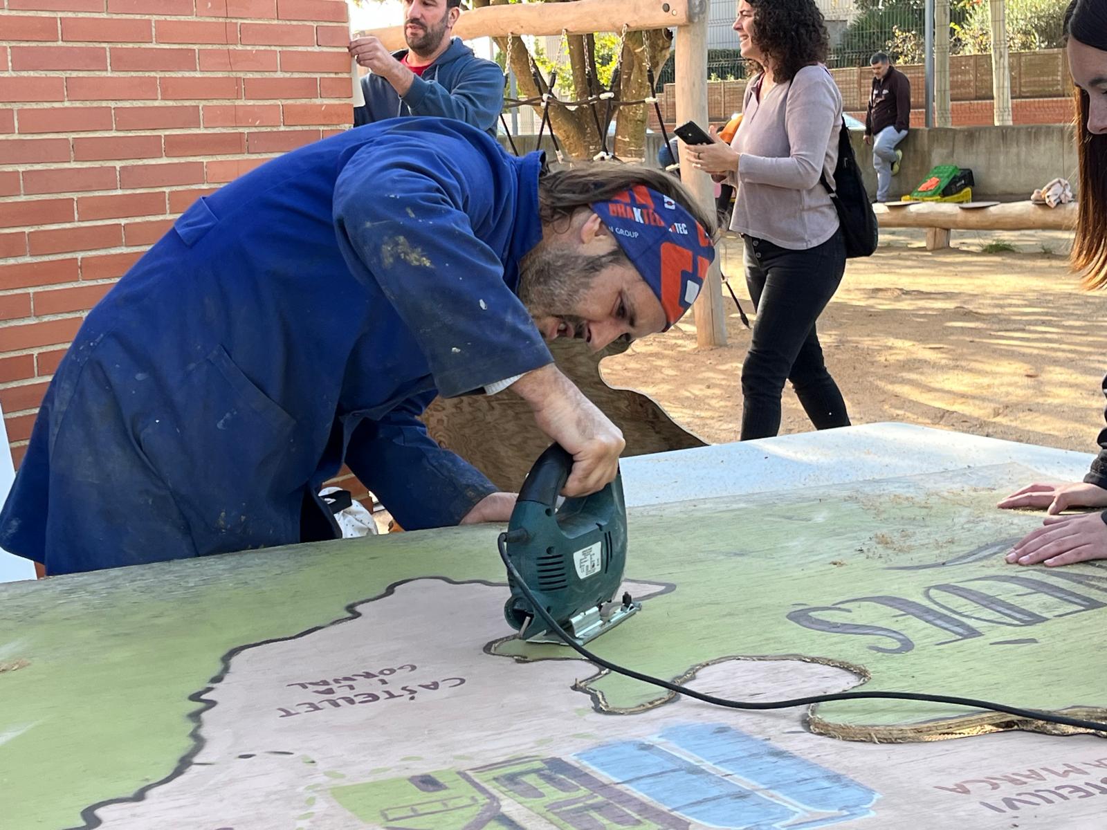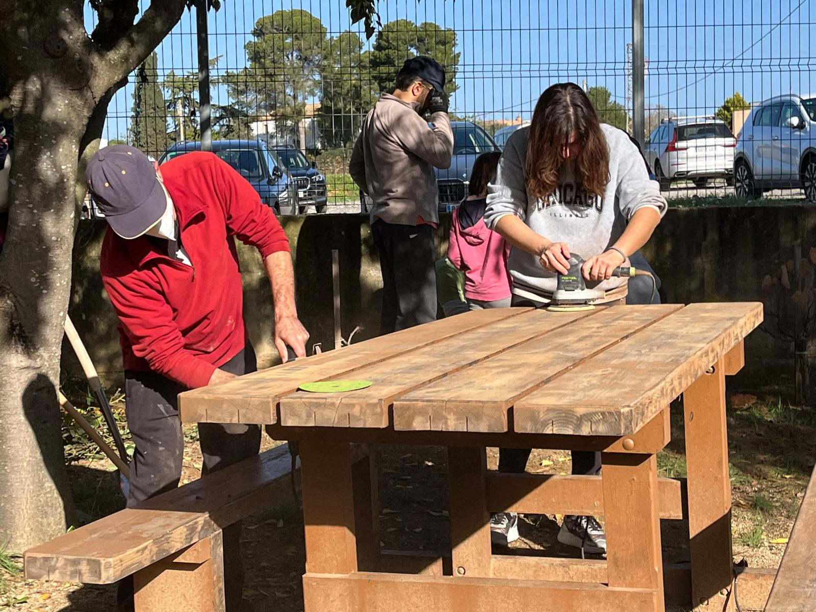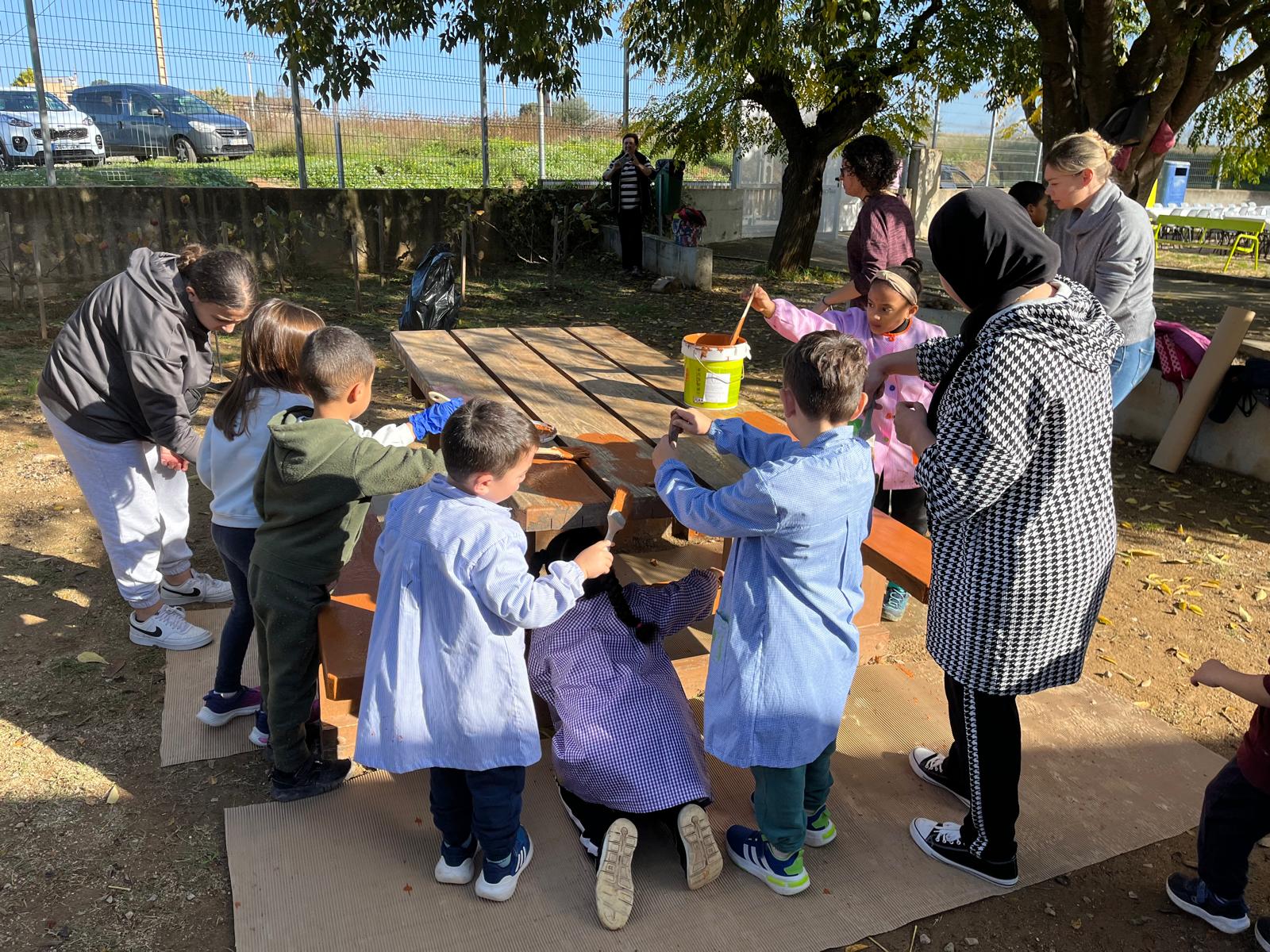 – Poliment i repintat dels bancs i taules exteriors de l’escola.